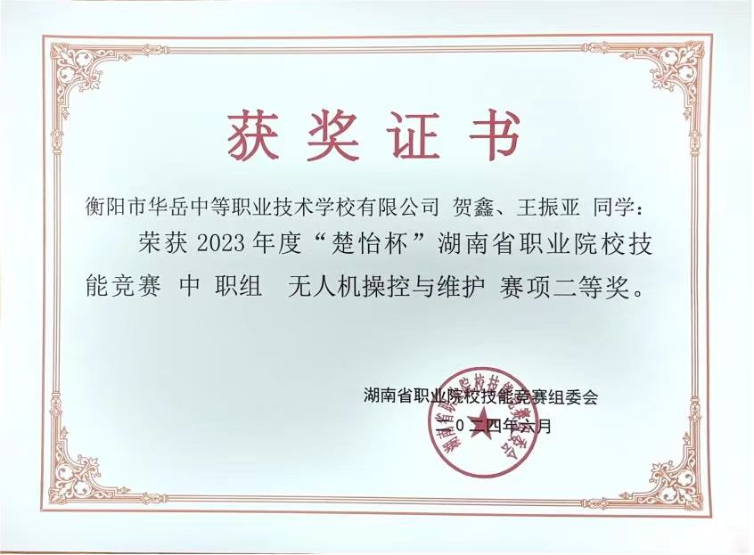 热烈祝贺我校学子获2024年度“楚怡杯”湖南省职业院校技能竞赛无人机操控与维护二等奖
