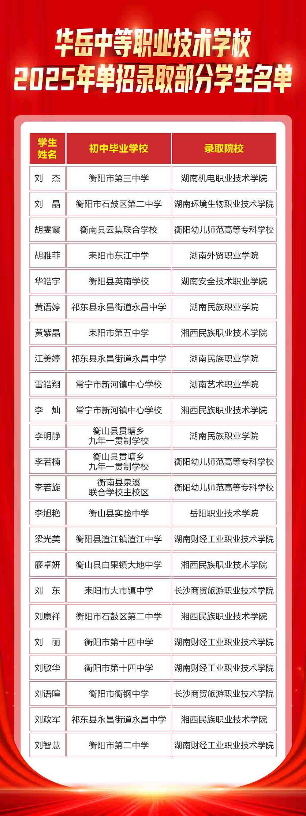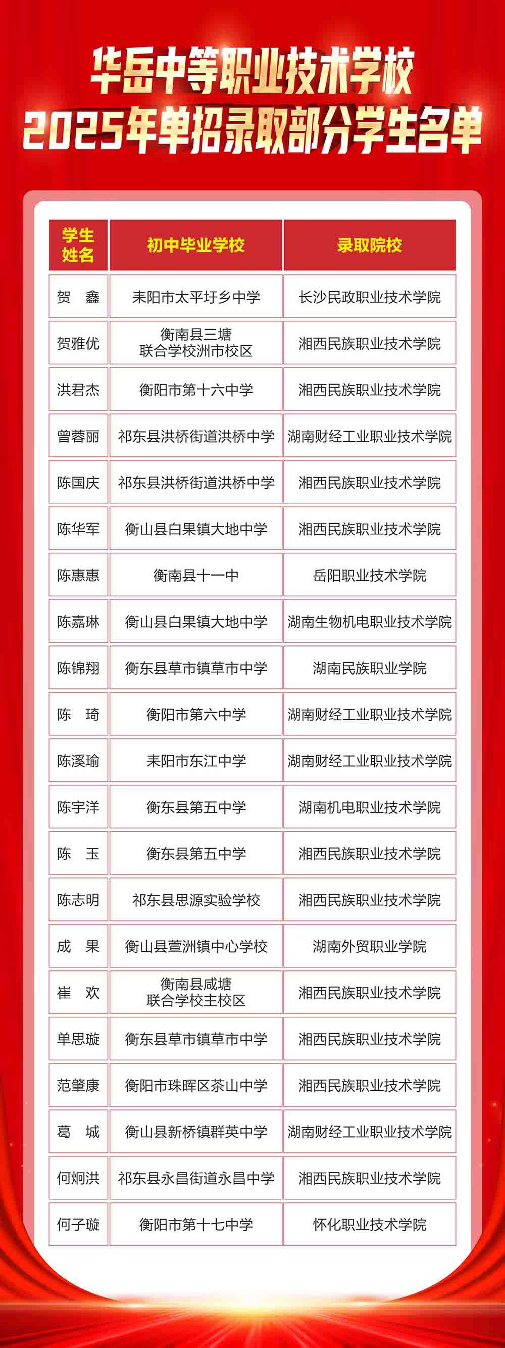 华岳中等职业技术学校2025年单招部分录取学生名单
